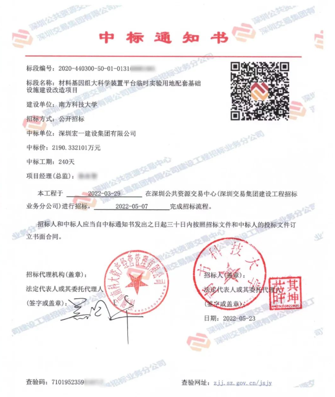 近日,南方科技大学材料基因组大科学装置平台临时实验用地配套基础设施建设改造项目招标圆满落幕。经过资格预审及方案评审,我司在众多强手中脱颖而出,成功中标!中标价为:2190.332101万元!
