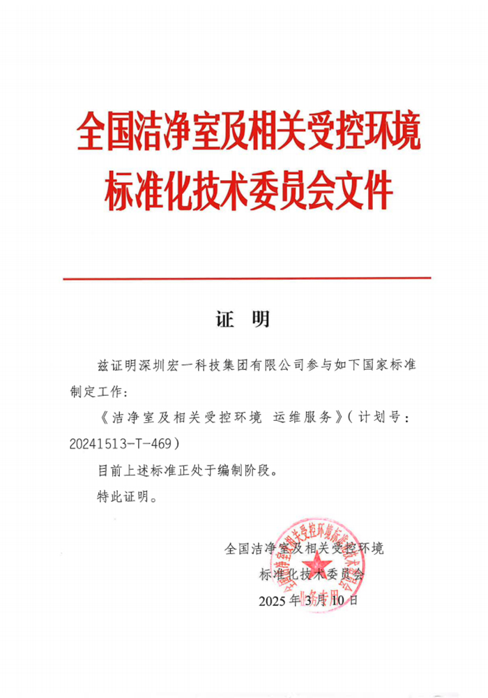近日,从国家标准化管理委员会传来振奋人心的喜讯!由深圳宏一科技集团深度参与编制的两项国家级重要标准——《实验室家具通用技术条件》GB/T 24820-2024与《洁净室及相关受控环境运维服务》(计划编号:20241513-T-469)已正式发布/通过!